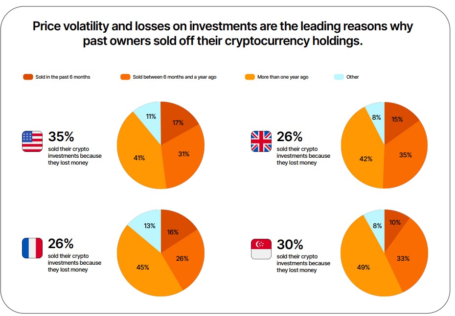 The report found that 75% of past crypto owners had sold their holdings over six months ago, but now, a substantial portion express renewed interest in re-entering the market. In Singapore, bullish sentiment has rebounded sharply, with only 10% of investors selling in the past six months compared to 49% a year earlier.