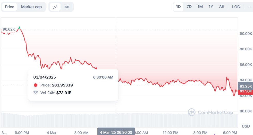While Riot flexed its operational muscle, Bitcoin’s market took a hit. The cryptocurrency slid 9% to $81k at the time of publication. Investors had cheered Trump’s announcement of a U.S. strategic crypto reserve, pushing prices above $85,000. But tariff concerns triggered a sell-off, wiping out those gains, CNBC reported.