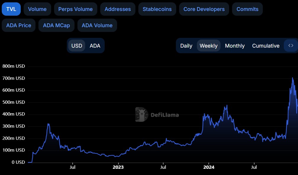 Cardano has also experienced extensive activity in the Decentralized Finance (DeFi) space. According to Data from DefiLlama, the blockchain network’s total value locked is currently at $476 million. ADA dropped to a monthly low of $.0.77 on December 20, with trading volumes falling to nearly $3 billion.