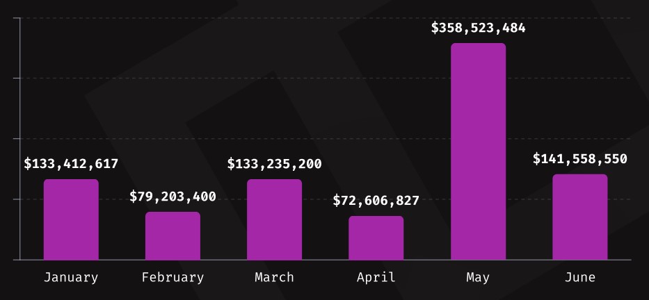 • Hacks were the primary cause of losses, accounting for $564,238,811 from 53 incidents, a 155% increase from the previous year.