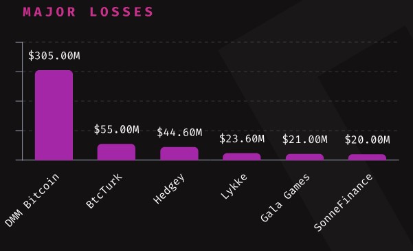 The majority of the losses resulted from two major incidents. DMM Bitcoin, a Japanese crypto exchange, suffered a colossal $305 million loss, while Turkey’s largest cryptocurrency exchange , BtcTurk, reported a $55 million loss. These two events alone accounted for 62.8% of the total losses in Q2.