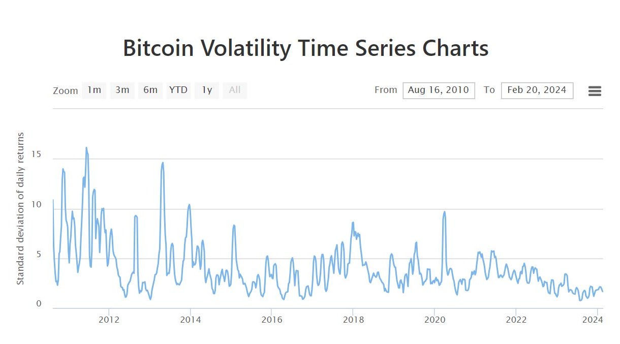 On top of this, the Bitcoin market cap is far larger now than in the early days of the asset’s existence, currently sitting just above $1 trillion, which is approaching the November 2021 all-time high of over $1.2 trillion. This still puts BTC a long way off gold (for which it is touted as a digital replacement), which has a market cap of around $13.6 trillion, but nonetheless, BTC is a weightier asset than it once was, which corresponds to reduced volatility.