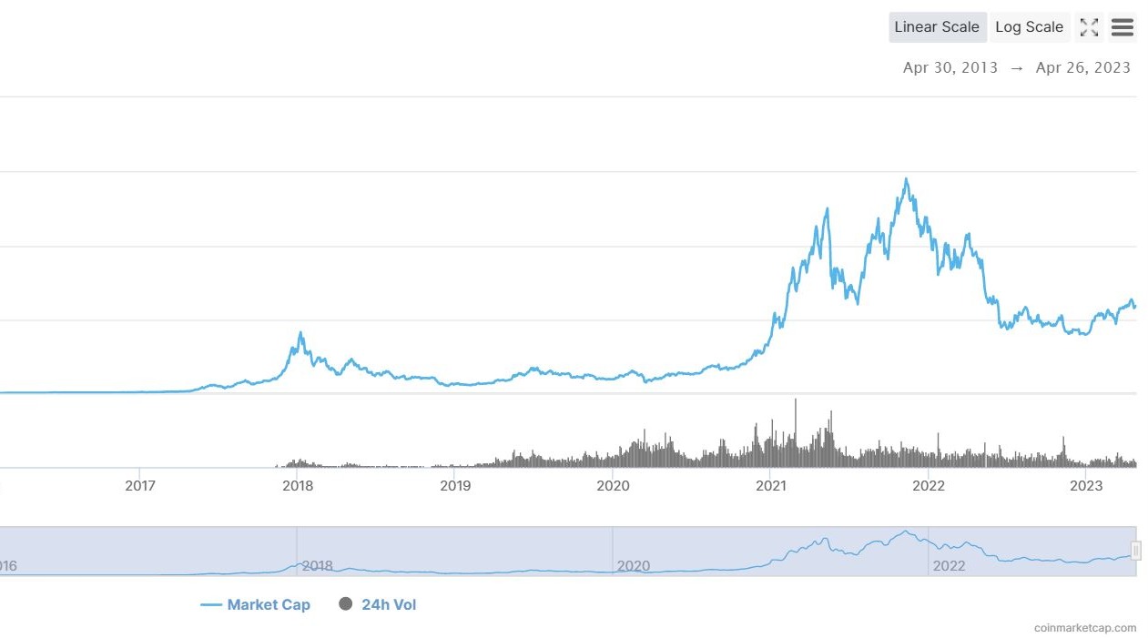 Total cryptocurrency market cap. Image from CoinMarketCap.