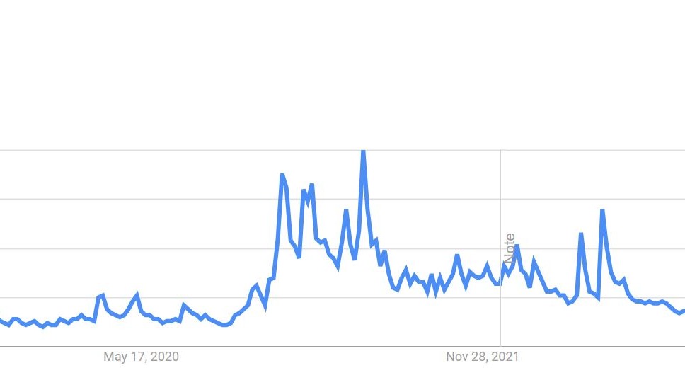 Worldwide Google searches for "bitcoin" surged in 2021.