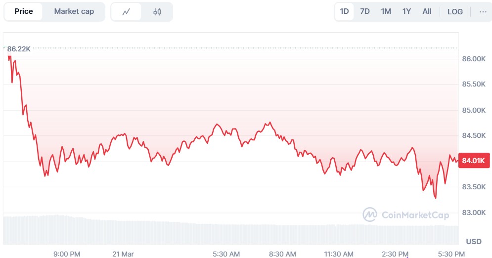 • At the time of publication, BTC's price had dropped to $84K, levels last seen in November.