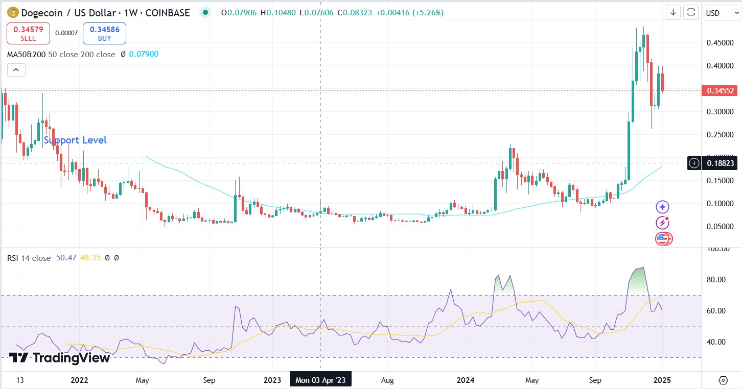 Weekly Price Chart DOGEUSD, Source: TradingView