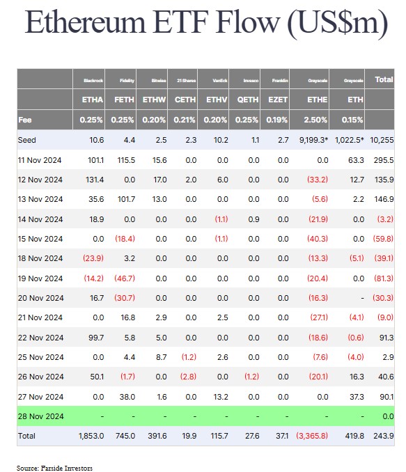 Additionally, Ethereum ETFs have had consistent inflows, with $90 million recently added, according to Farside Investors data. Ethereum remains the backbone of the DeFi ecosystem.