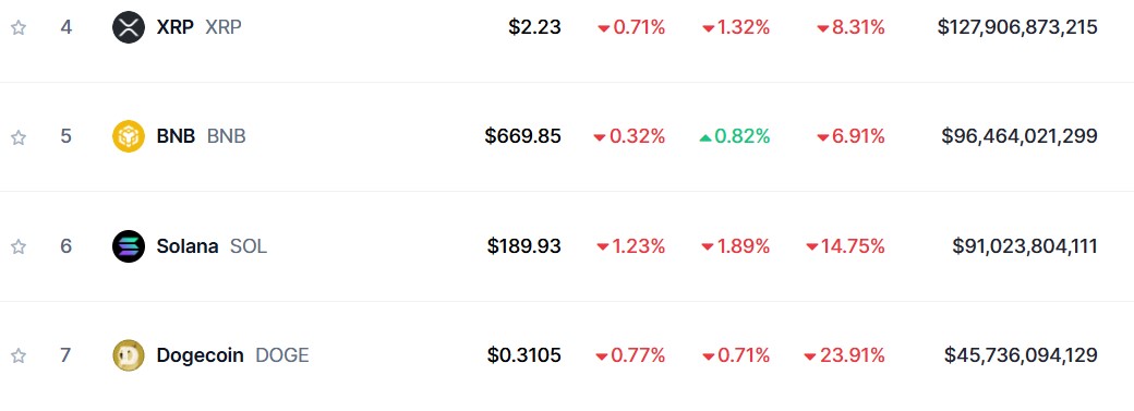 The cryptocurrency market is facing a tough week, with Dogecoin taking the brunt of the losses. Dropping 11% in just 24 hours, the meme-coin's sharp decline is part of a broader sell-off that has seen Bitcoin, Ethereum, and other major coins struggle.