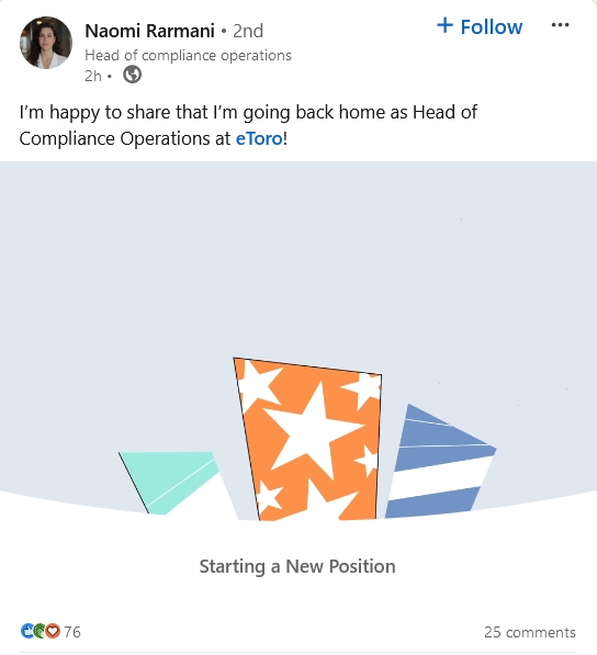 In her return to eToro, Rarmani expressed enthusiasm about taking on the role of Head of Compliance Operations. She emphasized her focus on upholding the highest standards of regulatory compliance.