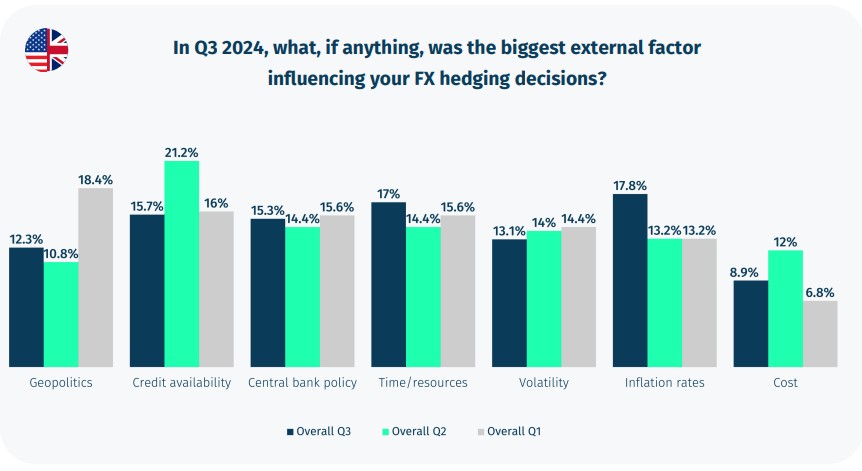 Inflation remains a major factor influencing hedging decisions, particularly for UK firms. In October 2024, inflation in the UK reportedly rose to 2.3%, driven by higher energy prices and new government measures.