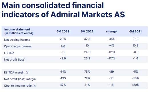 Admiral Markets has reported its financial results for the first six months of 2023, highlighting mixed performance during this period. Despite an increase in the number of active clients, the company posted a net loss of EUR 3.9 million.