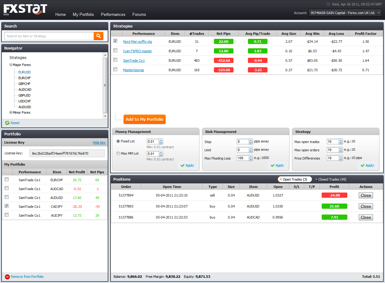 Just like Currensee, FXstat only allows verified account holders (3-4 months of live track record) to apply to become trade leaders. FXstat also tries to tackle the infamous problem of following traders - incompatibility between various brokers, trading styles, execution styles, differing spreads, etc - from a different angle: it filters out trade leaders who have less than 7 pips profit on average. This means that if you follow someone you have a nice error margin before you see that their trading style is incompatible with your own broker.