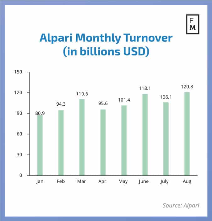 The total turnover in August 2017 at Alpari was reported at $120.8 billion, easily beating its July 2017 figure of just $106.1 billion – this was good for a growth of 13.8 percent on a month-over-month basis. The aforementioned factors were the paramount drivers of the group’s volumes. The group has seen its turnover edge higher for consecutive months.