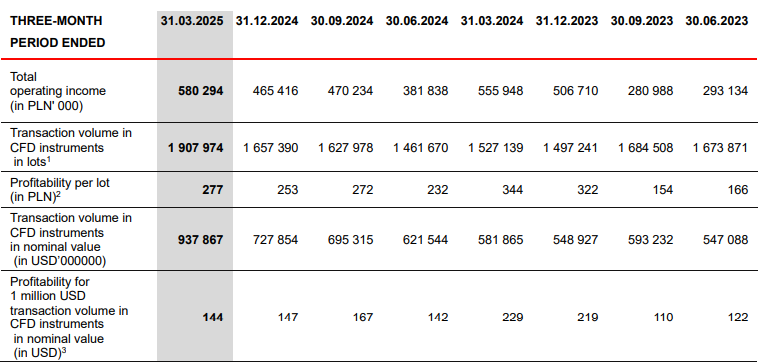The Polish brokerage's net profit slipped by more than a quarter year over year, from PLN 302.7 million to PLN 193.9 million, according to the company's preliminary financial and operating results for the first quarter of 2025.