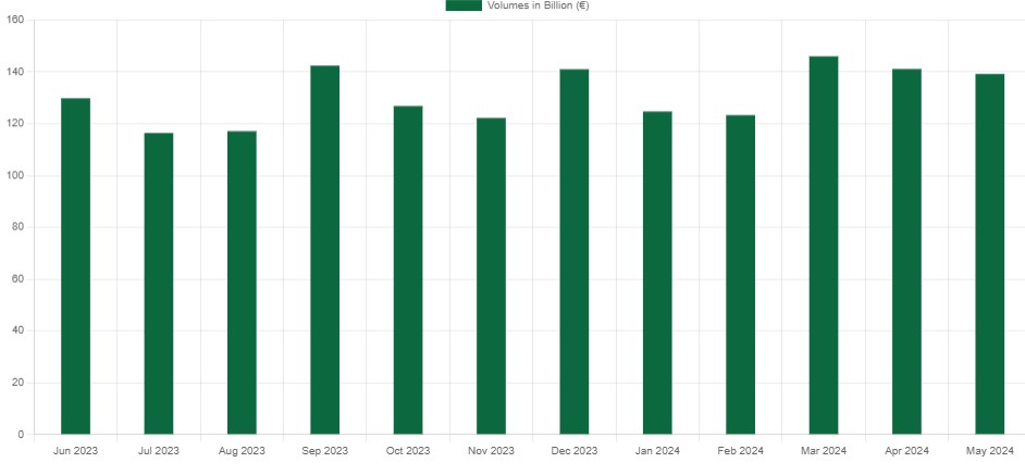 Elsewhere, 360T's daily volumes closed at USD $2,589,269,266.9, a drop from USD $3,209,370,392.22 in the same period of May. However, this decline, which represents a 21% decrease, could partly be attributed to shorter trading days in June.