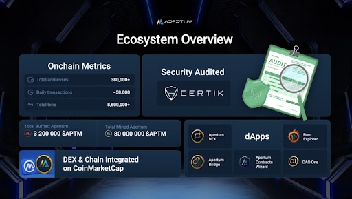 Additionally, Apertum's audit by CertiK — one of the most trusted names in Web3 security — confirmed the platform’s exceptional security standards. With zero vulnerabilities identified, Apertum has earned a spot among the most secure blockchain networks. Moreover, its integration with CoinMarketCap has provided greater visibility, solidifying its standing in the broader crypto market.