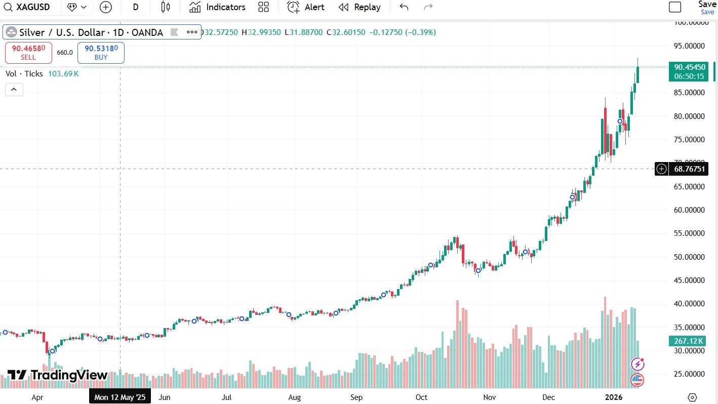 Silver’s latest surge has pushed the white metal into uncharted territory, as political drama around the Federal Reserve, tighter market rules and mounting supply tensions converge to send prices through another record.