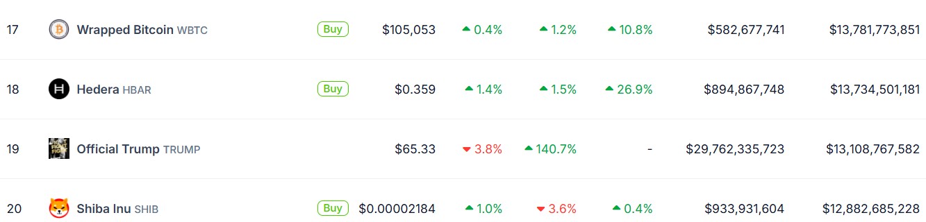 Official Trump $TRUMP, Source: CoinGecko