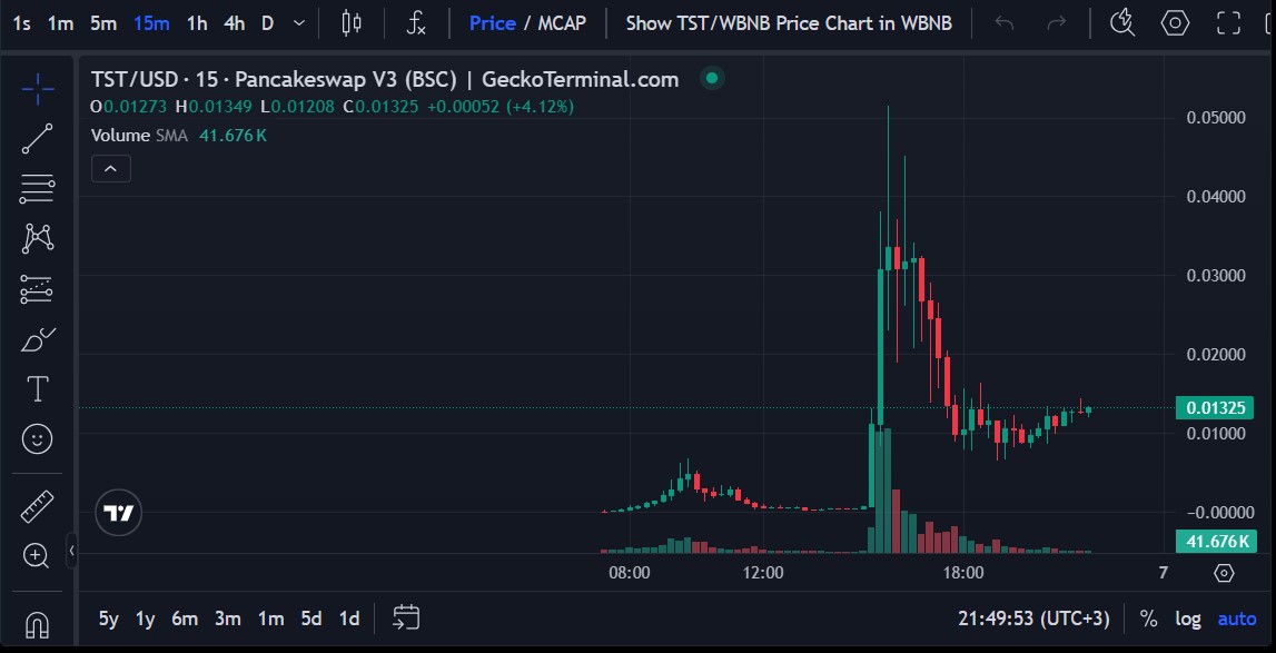 Crypto influencers, especially within the Chinese market, identified the coin and reportedly began aggressively trading it. Within hours, the speculative fervor sent TST’s price soaring. It reached a peak of $0.05183, with its market capitalization surpassing $50 million.