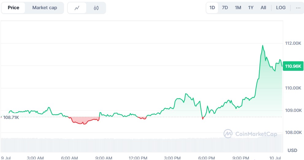 While Bitcoin’s price has now set a new record, questions remain about its ability to hold above $112,000. The $110,000 zone could flip into support if momentum continues, but traders are watching closely for signs of exhaustion or consolidation.