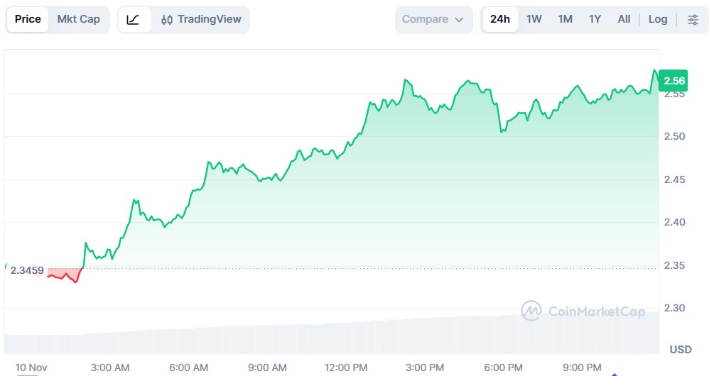 The US Senate reportedly reached a deal on a budget bill over the weekend, ending the longest government shutdown in history. The resolution has sparked optimism across financial markets, including crypto. XRP has responded strongly, surging around 10% in the past 24 hours to trade at $2.56, according to CoinMarketCap.